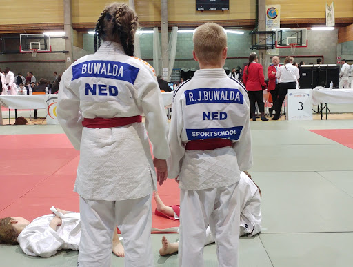 Onder de vlag van Judo A-Zeven maakten Amara en Riemer-Jelte Buwalda van judoschool Poelstra hier hun internationale debuut.De 8 jarige Riemer-Jelte beet in de ochtend uren van 16 april de spits af. Uitkomend in de klasse tot 13 jaar moest ie zich staande houden tegen meest 3 en 4 jaar oudere jongens.